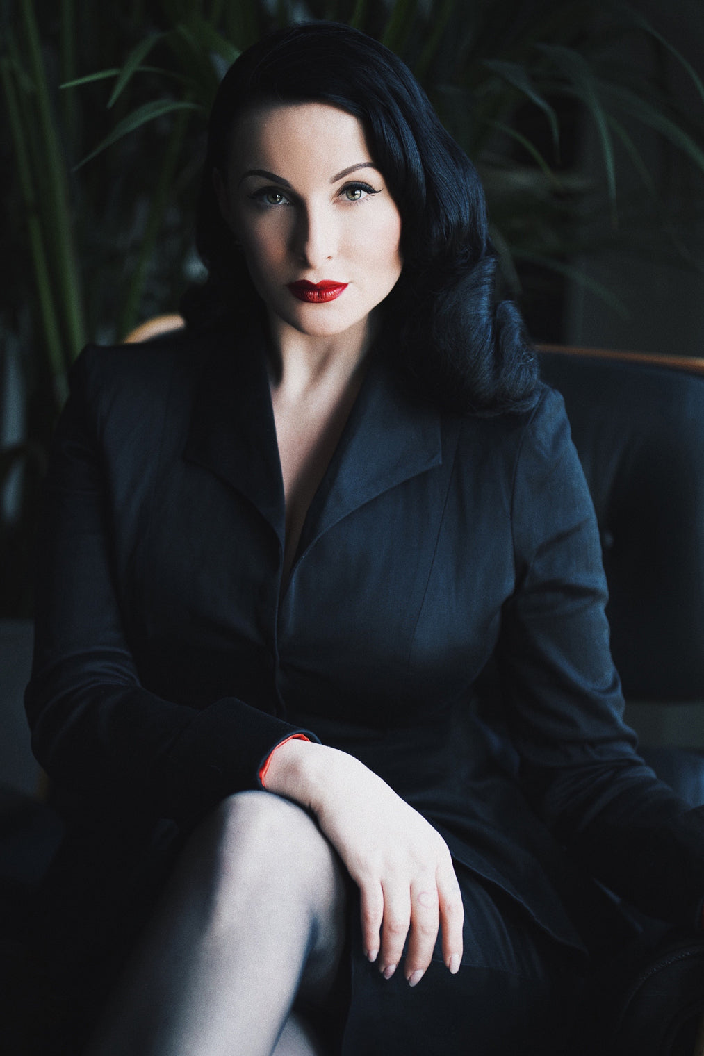 Inspired by the key item of Christian Dior's New Look Revolution... The Divine Peplum Jacket! Dior named his first collection "La ligne corolle", the Corolla collection, and with this New Look he made fashion history. ''I accentuated the waist, the volume of the hips, I emphasized the bust.'' That's exactly how we like to see Divas ;-). She has a deep V-neckline with a pointed collar and a flattering peplum detail at the bottom. Hugging your curves in all the right places, she makes you feel powerful and gorgeous, vavavoom. Made from a supple, high quality black cotton blend with a very light stretch, she enhances your curves beautifully. And just like you, Divine is ‘beautiful inside and out’… since she is fully lined with a bright red satiny fabric covered with black lips, making the inside as stunning as the outside. Pair her with The Divine Pencil Skirt for the perfect business-diva-look. ‘’Give a Diva the right suit and she can conquer the world!’’
